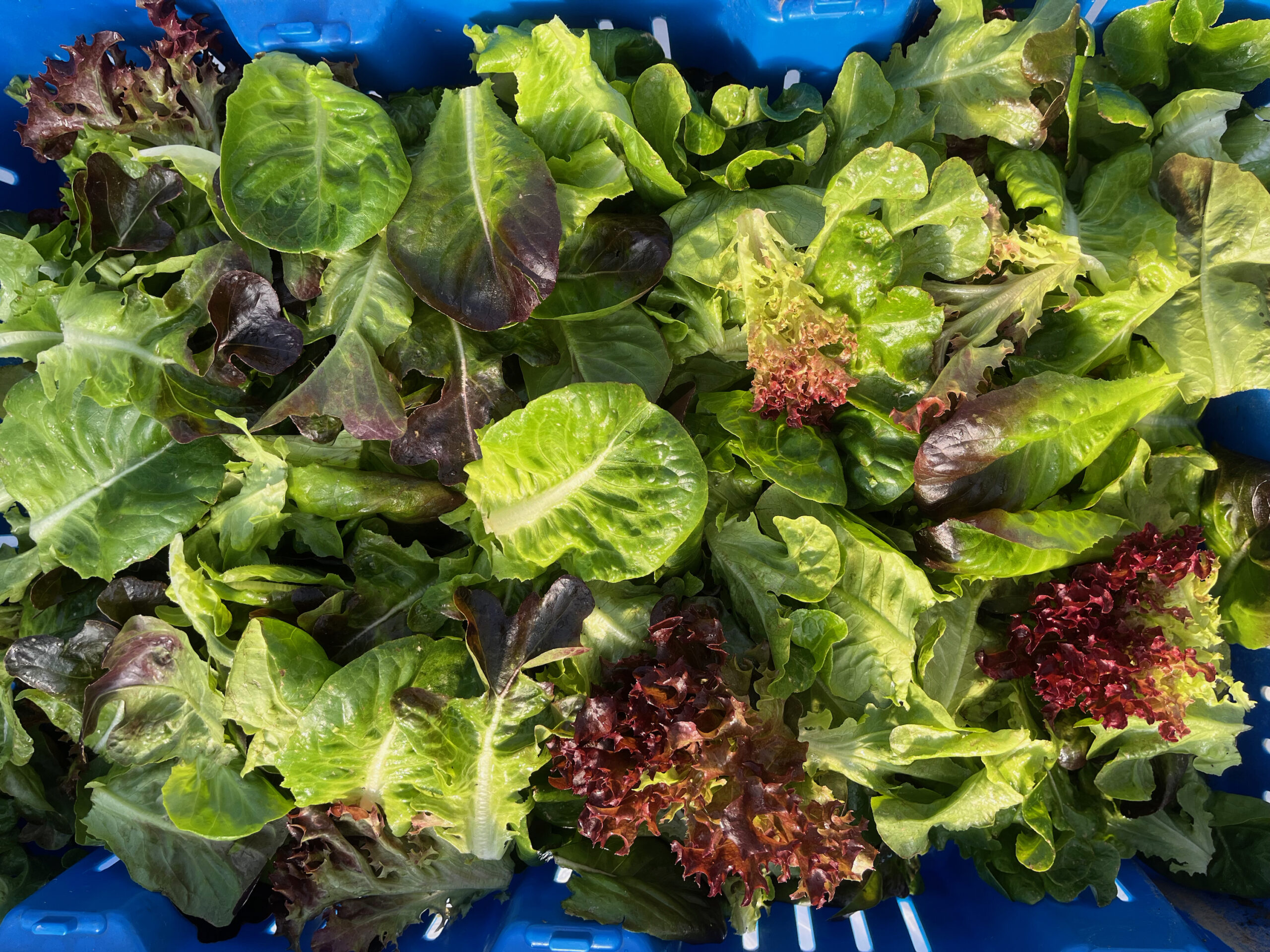 Lettuce Blend – 1/2 pound bag, Lettuce Blend Clamshell – 5oz., Green Romaine, Butterhead, Red Leaf, Green Leaf, Red Romaine